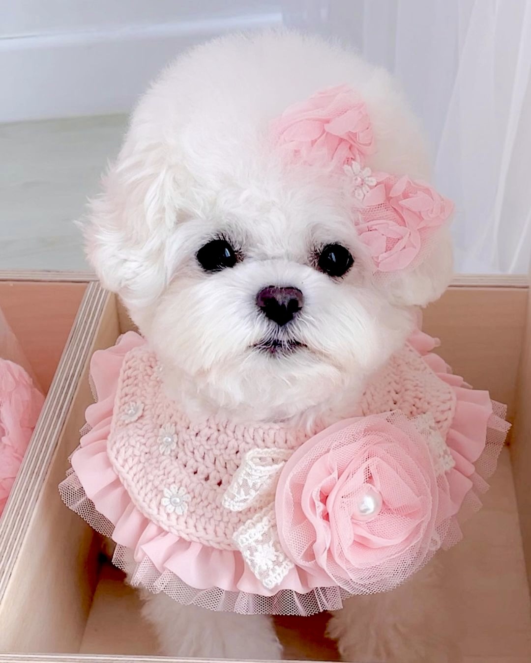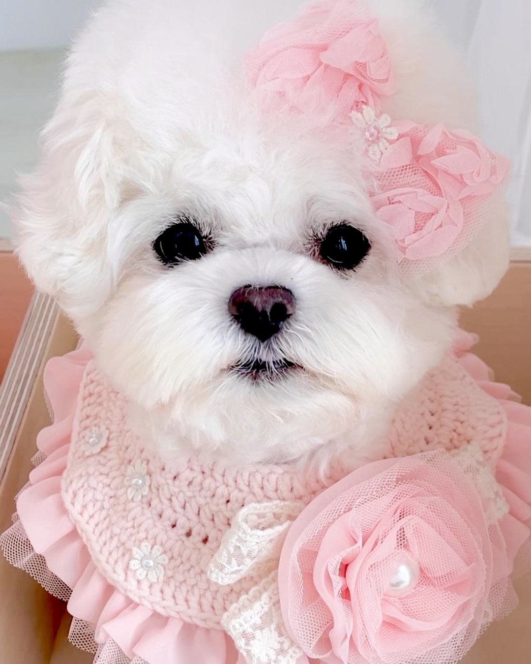 진주 꽃 코사지 케이프 착용한 에떼의 아름다움에 빨려들어간 다 .... @_@