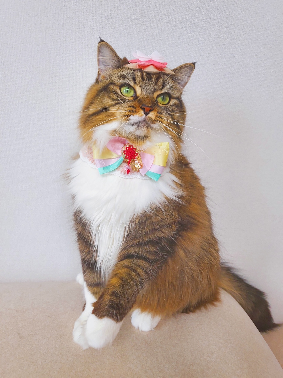 파스텔 색감의 사랑스러운 무지개떡 한복 케이프에요 :)